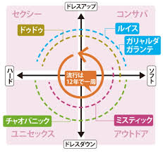 - ファッションアパレルの企業として手堅いビジネスを続けている株式会社パルは「パル アパレル サイクル」という有名なファッションライフサイクルの理論を持っており、それが長期間にわたる同社の成功の背景となっている。冒頭で書いた「クルマを持たない若年世代」と「ギャルの復活」、「パル アパレル サイクル」は一見違うことのように思われるが、根底は同じではないかと感じられる。現象は違っても、その根底にあるのは「サイクル」であり、それがどういう理由で現出するかがキーなのだと感じる。そういう視点で周りを見渡すと、そのままではないにしろ、若干形を変えて戻ってきている事象や時流に合った形で変化しているものなどが見つかる。このままサブカルチャー論に行きたいところだが、紙面も尽きてきた。それは別の機会に譲るとしよう。