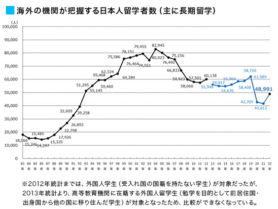 - 冒頭の顧客との会食も、地方都市とはいえ、その政令指定都市では老舗No.1の由緒あるホテルのラウンジでなのだが、なんとお料理10品強+ビールから本格カクテルまで飲み放題、加えてお料理をすべて食べた後はなんでもオーダ食べ放題で一人二時間5,500円だ。新橋の居酒屋に飛び込みで入って1時間で支払う値段よりも安い。観光地としても有名であるため、ラウンジはインバウンド外国人客で満杯だ。そりゃそうだろう、これだけのお料理と飲物を堪能して、おまけに要所要所でプロのピアノ演奏まで聞けて、ドルに直せば二時間35ドル、最も円高だった2011-12年のレートで換算すれば2,800円なのだ。その頃、東アジアや東南アジア、また欧米を旅行して「安い,安い」と消費しまくっていた日本の消費者の姿と彼らは100%重なる。「そのうち、『いいなぁ、あんなに日本人は金をもっていて』とジトッとした目で我々を見ていた海外の現地の人達と同じように、我々がジトッとした目で俺たちが見るようになるぜ」とは、その顧客の諦めたような冷笑を浮かべての言葉だ。確かに海外での日本円に換算した物価の高さは常識を超えている。例えばあれほど好んで日本から押し寄せたハワイ。食パン700円、ミネラルウォーター300円、ファストフード2,000-5,000円、ビッグマックセット1,600-2,000円…。必然的に「海外旅行」は贅沢品となり、あれほど誰も彼もが行っていた海外旅行の頻度も急速に落ちた。さらには日本からの留学生数の減少だ。コロナ禍のはるか前、2004年をピークに日本から海外への留学生は低下し続けている。これはとりもなおさず、海外の様子を自分の目で見ることなく、内向き名国内生活をひたすら続けているということでもある。井の中の蛙、だ。