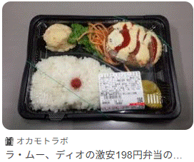 - この状況で怖ろしいのが、貧困化している自分達の姿を自らはあまり気づいていないことである。流通業では、ドラッグストアの躍進に加えて、ディスカウントストアが再び勢いを盛り返している。そしてそのいくつかの企業の売り物は格安食品である。下の写真はディスカウントストアの弁当の写真だが、左上が「オーケーストア299円」、右上が「ローソンストア100 298円」、左下が「ロヂャース 189円」、右下が「ラ・ムー 198円」(大黒天物産)だ。ほかにもNHKのドキュメント72時間「大都会 24時間営業の格安弁当店」は、新大久保の一品298円の「ニハマル弁当」など、物価の高い東京でも下町には格安弁当が数々ある。筆者はいま62歳。年金も積んできたし、多少の蓄えもあり、「老後不安」と言うほどの不安は抱えていない。しかし、大黒天物産のある岡山にでも引っ越し、二階建て外階段の木造アパート6畳風呂無し、に住めば、激安弁当198円3食30日で2万円+家賃3-4万円+水道光熱費1-2万円=6-8万円で一ヶ月食っていけるのではないかどと夢想したことがある。これなら国民年金68,000円の範疇だ。とすれば、別にこれでも生きていけるじゃ亡いか…などと考えている自分がいることがちょっと怖くなったりする。
