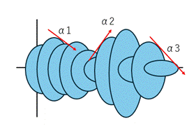 - 筆者の調査分析の主な内容は、企業業績の推移と予測である。そして長くその仕事を続ける中で、下記のような図を常に意識するようになった。縦軸と円の大きさは円で示される利益の大きさ、横軸はt(時間軸;右に行くほど最近)である。企業業績調査の基本は、業績が前年比でどれだけ上昇するか/下降するかであり、それは図では赤い矢印になる。経験上、一定の成長率はあり得ないため、α1,α2、α3のように低下するときもあれば、上昇するときもある。ただ、企業は継続することが前提である以上、ある「時系列断面」を切り取った「微分」=傾きだ。それはそれで重要だが、そこに拘泥すると企業の本質を見逃す。なぜならば、企業とはその傾きを「積分」した俯瞰図=円の重なりによって描かれる不定形の円筒=「積分」であるからだ。瞬間の傾きだけを語っても企業業績の全体を理解していることにはならない。しかし、筆者が近年、懸念しているのはこの「微分」=傾きばかりが注目され、すぐに忘れ去られる一方で、その大局的な流れの「積分」された俯瞰図を見ることが無視されがちなことである。そして、それはまさしく記者氏の語る「歴史の軽視」と同義だと感じる。