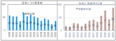 - これに関連して、消費者が支持する小売業態の変化が他のところでも目立ってきた。イオンの「まいばすけっと」の成功を見て、小型店(いわゆる「ミニスーパー」)を人口集中地域で展開する企業が増加している一方、人気を博した大型ショッピングモールの様子が変わって来たように感じる。具体的には、子育て終了世代や高齢者にとって大型モールは以前ほど魅力的な存在ではなくなり、中小型店への買い先移動が進んでいるような印象がある。地方では地域コミュニティの中心地として人気はあるものの、中には買い物客よりもモールに集まること自体が目的となり、実際の購買行動と乖離しているところも増えていると嘆く経営者も出てきている。テナントが撤退して後継テナントが入らない「空床率」も増加しているし、そもそもショッピングセンターの開店数よりも閉店数の方が増加しているのが現状だ。コンビニとモールの変化が消費にとって何を意味するのかを断ずるのは早計ながら、何らかの変化が起きているらしいことは間違っていないようだ。